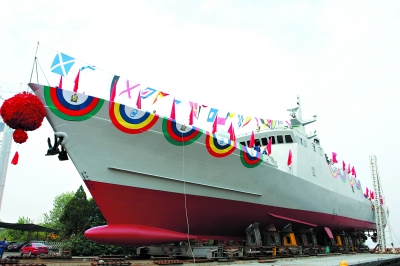9月26日,武船建造的出口国外的某新型水面战斗舰艇顺利下水。