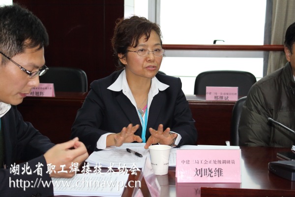 随后,领衔钢构专委会主任的王辉经理做了简捷的总结发言,他首先感谢湖北省总工会、湖北省民政厅等各级领导和各会员单位对钢结构专委会筹备期间的关心、支持,并表示要始终坚持“高端引领,横向联动”,秉承“三服务”宗旨,以高效务实的工作态度重点抓好四项工作,积极推进钢构专委会的健康快速发展。最后,中国工程建设焊接协会副理事长兼秘书长刘景凤教授级高工应邀讲话,刘秘书长高度赞扬湖北省职工焊协近几年来创新发展及所取得的业绩;介绍了工程建设尤其是钢结构行业发展状况,并表示愿与湖北省职工焊协钢构专委会携手努力,共创新辉煌。