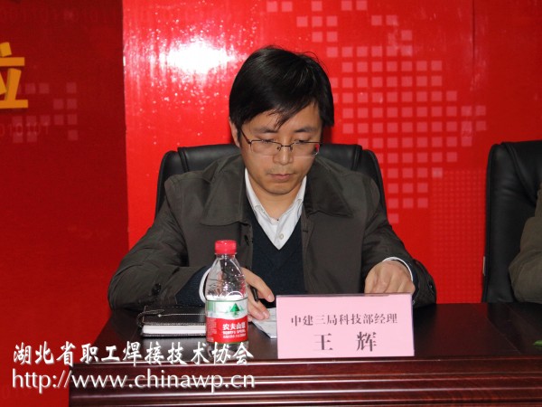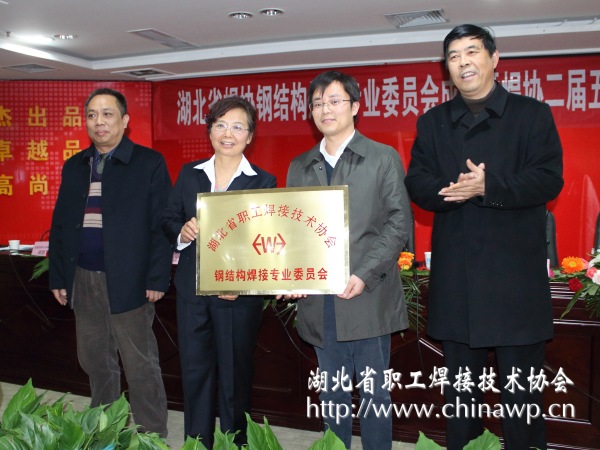 成立会上,首先由中建三局李勇副局长代表东道主——中建三局和中建钢构有限公司(武汉)致欢迎词。李副局长的致辞情深意切,不仅使大家加深了对中建三局位居湖北省和武汉市百强企业前三甲的主力军作用的认识,而且增强了湖北省职工焊协依托中建三局和中建钢构有限公司(武汉)建设好钢构专委会的信心。之后,由涂才江副局长代表湖北省民政厅宣读了关于“湖北省职工焊接技术协会钢结构焊接专业委员会”准予成立的鄂民社登〔2012〕30号批复文件;张远温秘书长代表湖北省职工焊协宣读了钢结构焊接专业委员会正、副主任和正、副秘书长以及首届钢结构专委会委员名单;湖北省总工会和湖北省民政厅领导向钢结构专委会新任王辉主任和刘晓维秘书长授牌。至此,全场报以热烈掌声,祝贺湖北省职工焊协钢构专委会正式成立。