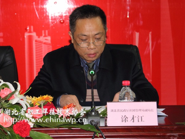 最后,湖北省总工会吴孝义巡视员作了重要讲话,他首先祝贺湖北省职工焊协钢结构专委会成立,祝贺武船等单位荣获表奖,充分肯定了湖北省职工焊协近几年来在人才培养、技能竞赛等方面所付出的辛勤努力和所取得的业绩,并殷切期望各会员单位要紧密团结,群策群力,共同谱写湖北焊协壮阔发展蓝图,为建设“五个湖北”、全面建成小康社会努力奋斗!