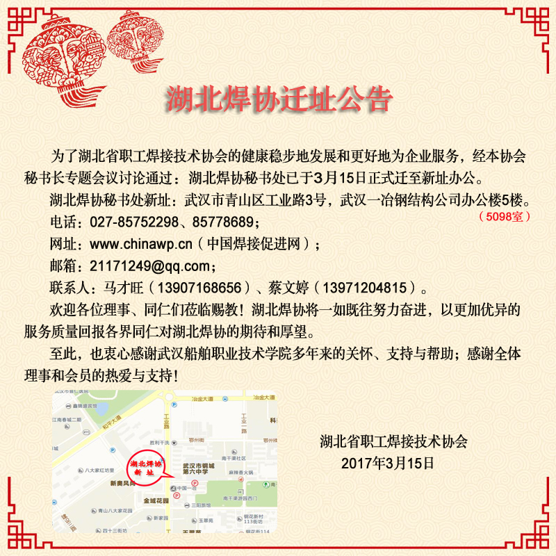 湖北焊协迁址公告