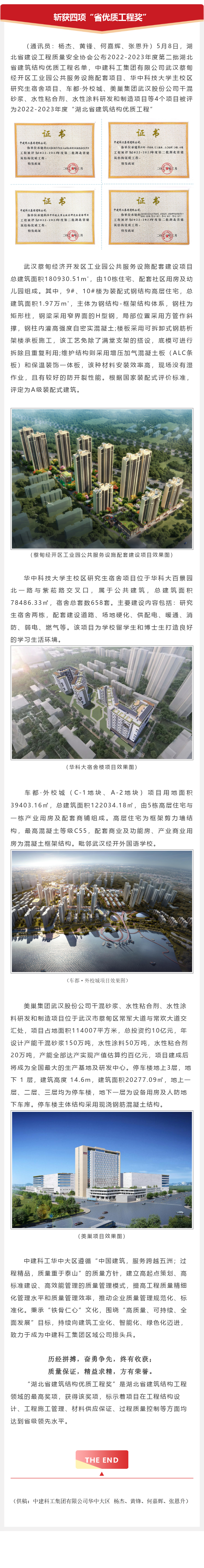 中建科工华中大区斩获四项“湖北省建筑结构优质工程奖”
