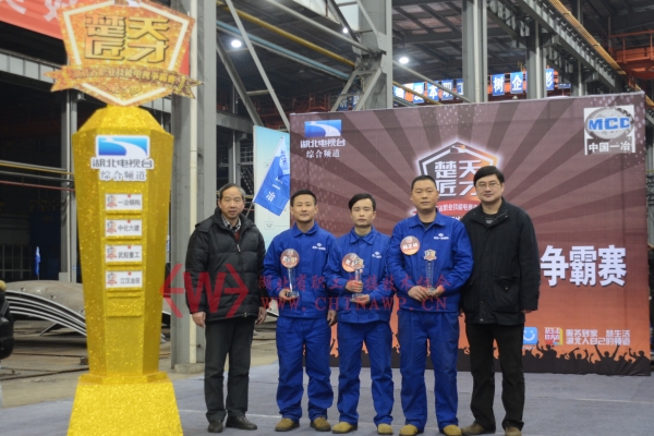 由湖北省人社厅主办,湖北省职业技能鉴定指导中心和湖北广播电视台承办,武汉一冶钢结构有限责任公司和湖北省职工焊接技术协办的“楚天匠才”湖北省焊工职业技能电视争霸赛,于2016年1月27日在武汉一冶钢构公司压容分公司正式进行现场实拍并圆满谢幕。各参赛代表队的选手通过本届赛事所规定的项目和要求进行了技能、技巧综合能力角逐,最终武汉一冶钢构公司代表队荣获团体第一、三名选手均获“湖北省技术能手”称号;武船代表队荣获团体第二、中石化江汉油田队和中国化学工程六建公司队取得并列第三的优异成绩,上述代表队参赛选手均荣获“湖北省行业技术能手”荣誉称号。至此,经过半年多时间策划、筹备的湖北省首届职业技能电视争霸亦划上了圆满的句号,值得点赞! |