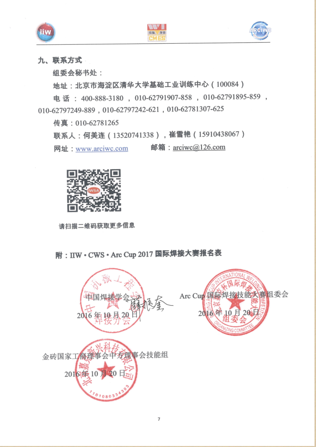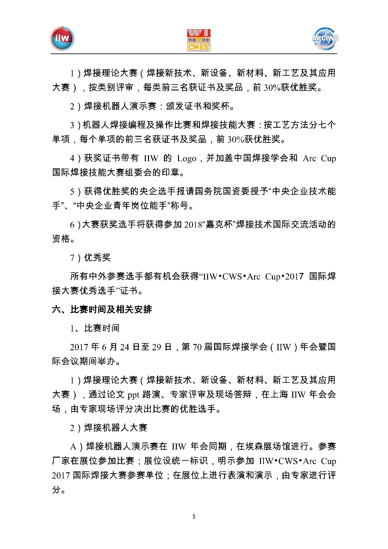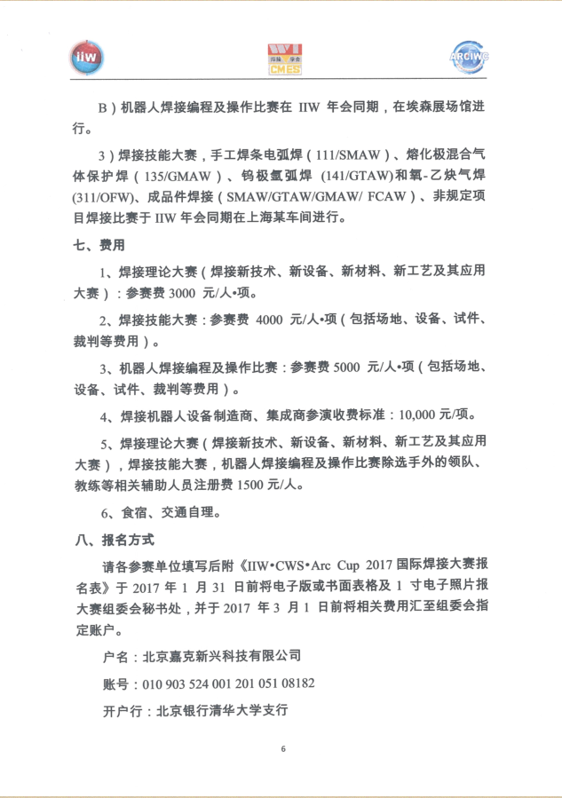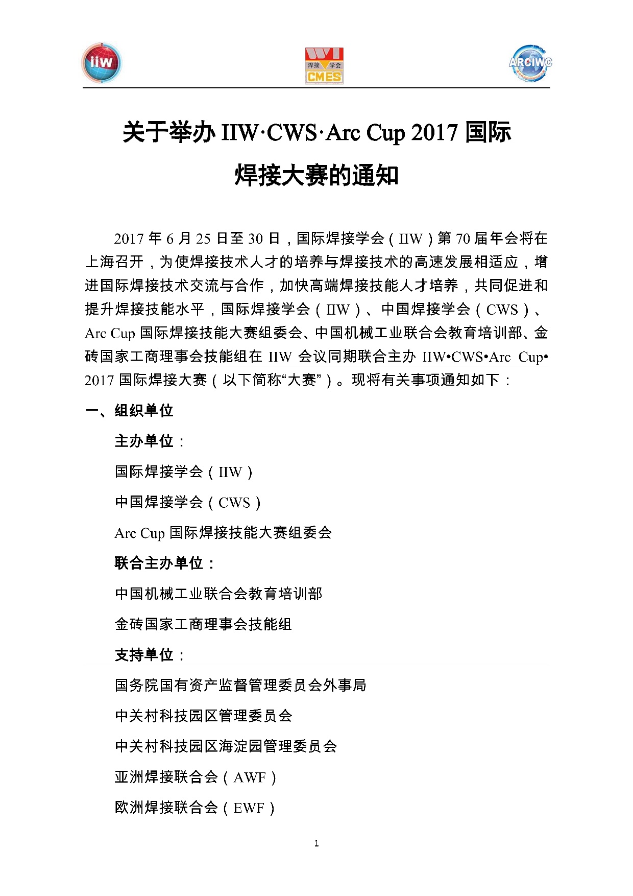 关于举办IIW.CWS.Arc Cup 2017国际焊接大赛的通知