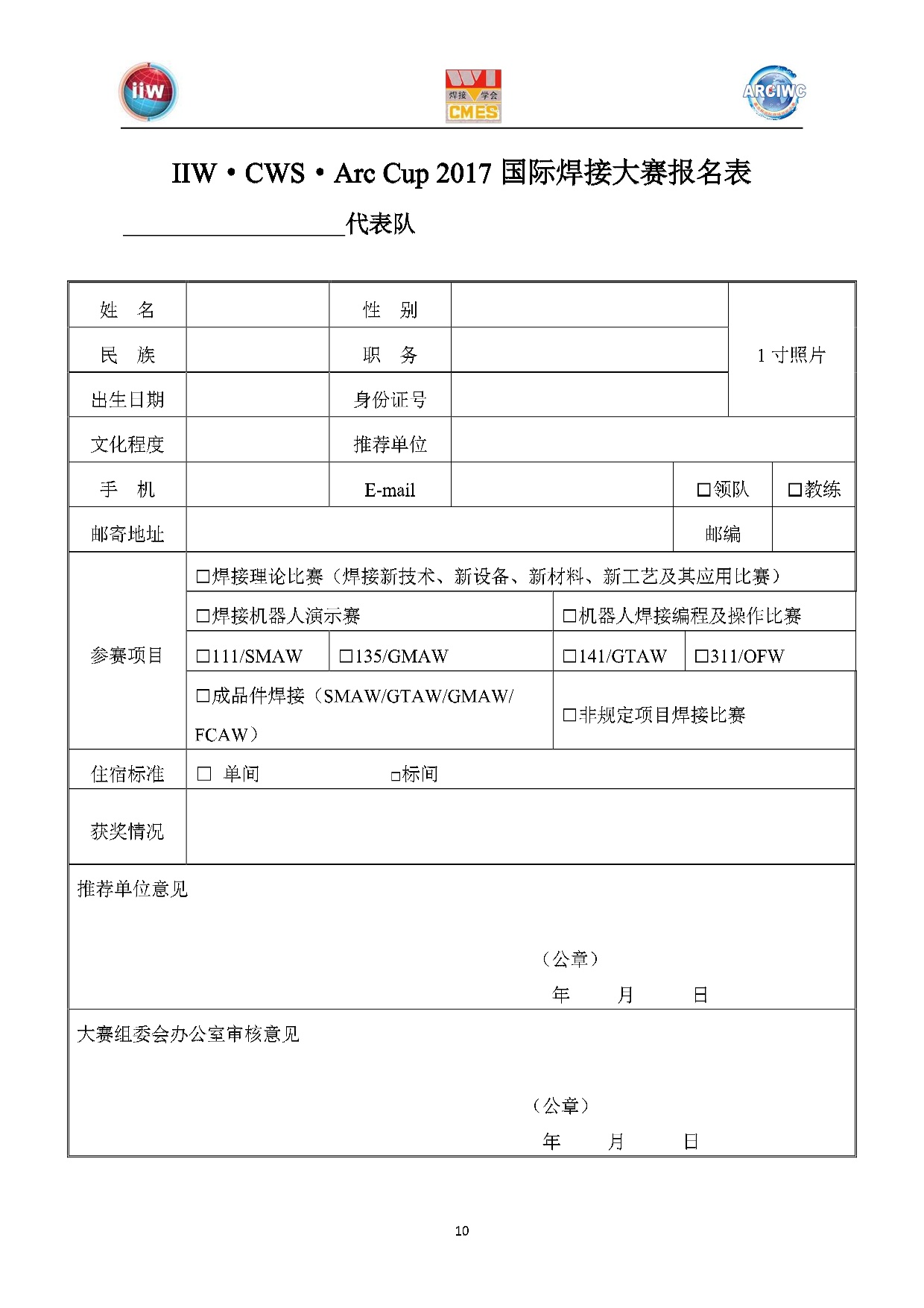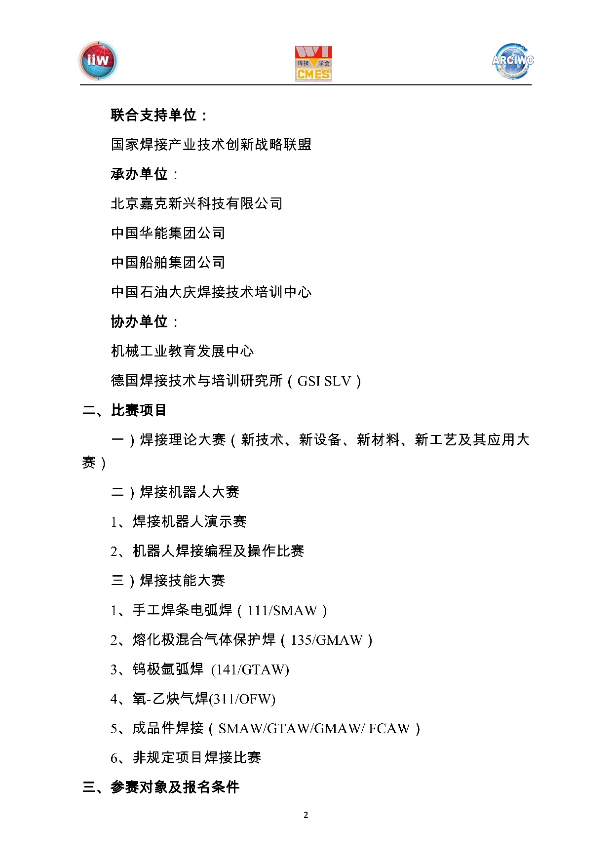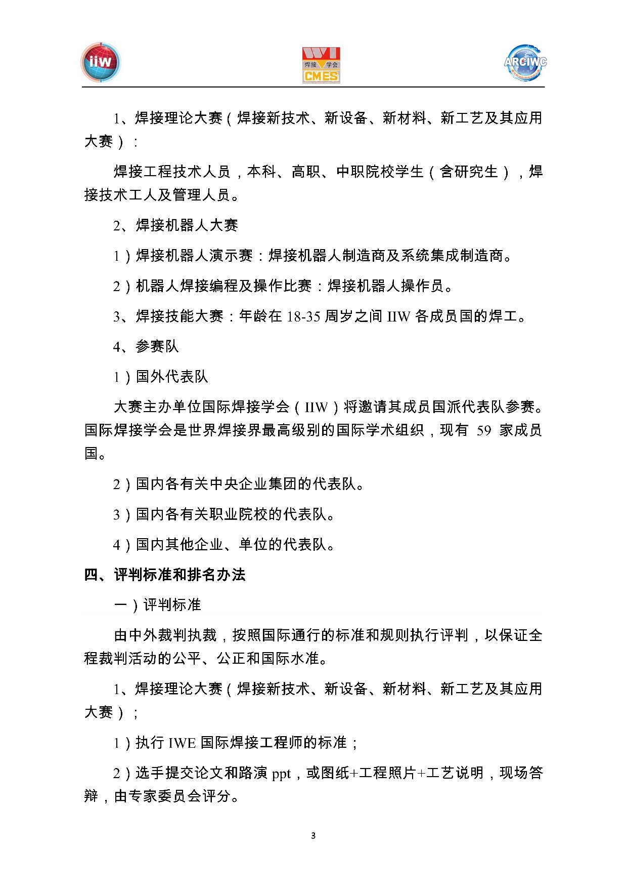 关于举办IIW.CWS.Arc Cup 2017国际焊接大赛的通知