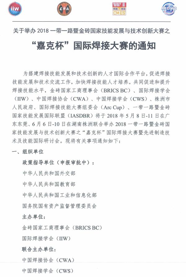 2018“嘉克杯”国际焊接大赛的通知