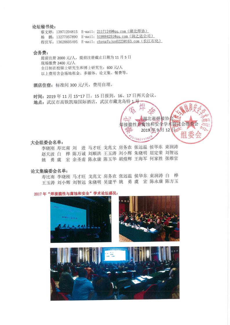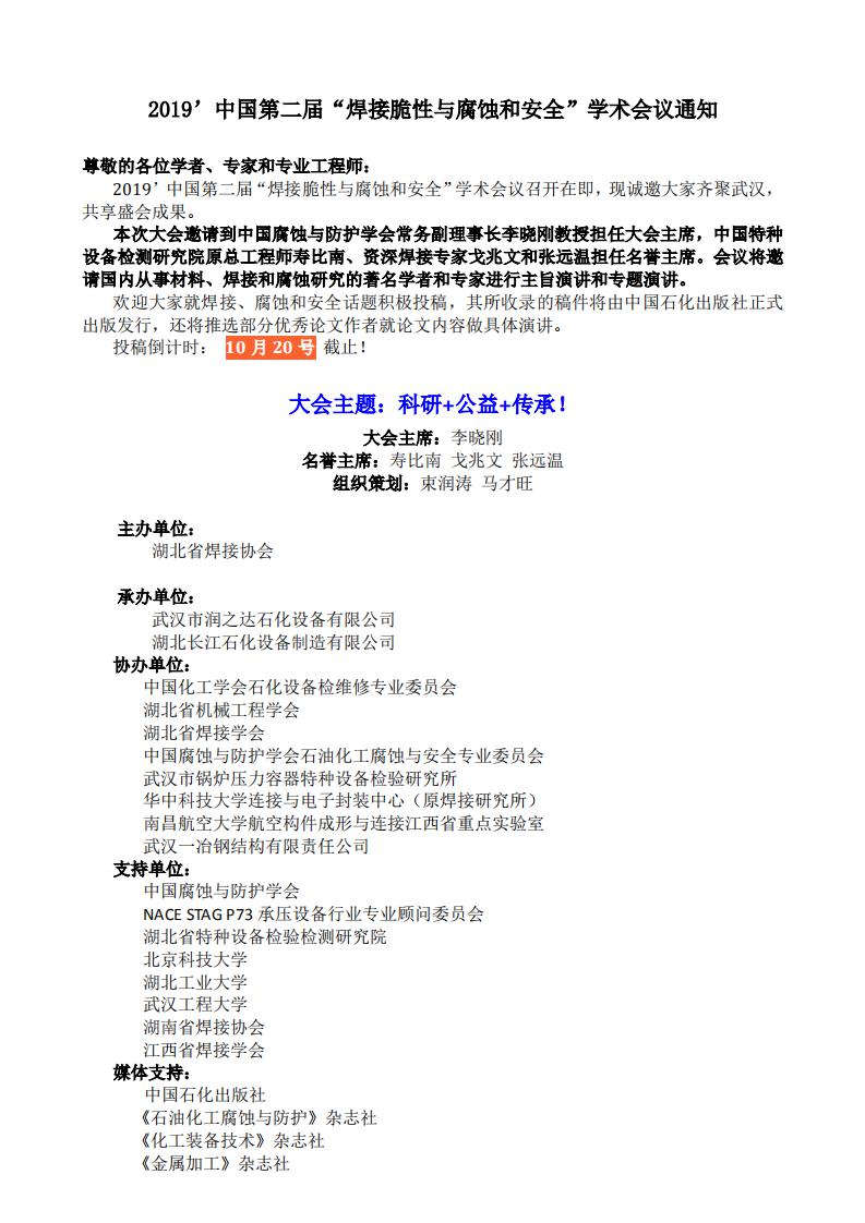 2019第二届焊接脆性与腐蚀和安全会议通知