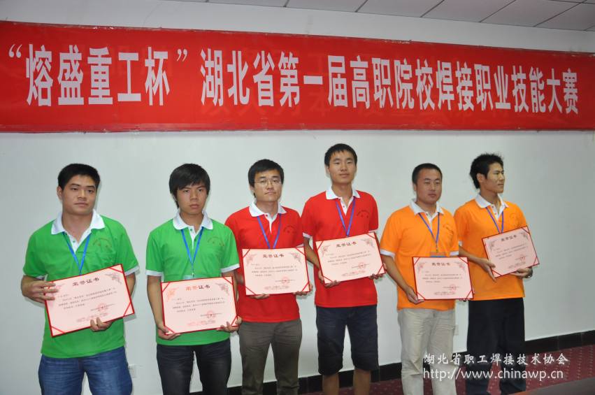 由湖北省职业技能鉴定指导中心主办,武汉船舶职业技术学院承办,湖北省职工焊接技术协会协办的“熔盛重工杯湖北省第一届高职院校焊接技能大赛”73日~4日在武汉船院举行。来自省内有焊接专业的五所高职院校的学生选手有幸参加角逐。选手们均通过了严格的理论知识考试和实操技能比赛。最终武汉船舶职业技术学院、武汉交通职业学院和黄石职业技术学院代表队分获团体前三名;魏国栋(武汉交通职业学院)和薛志红(武汉船舶职业技术学院)荣获焊条电弧焊组和CO2气体保护焊组第一名。首届比赛得到了主、承、协办各方高度重视,开幕式由武汉船院教务处郭江平处长主持、院长助理陈长江教授致词、程红兵党委书记宣布大赛开幕。应邀嘉宾江苏熔盛重工公司常建华副总裁、武船罗金华总工程师、武重金结厂李锴厂长、武汉建新石化设备公司张大祥总工程师、武汉奥拓数控焊接公司陈铭总经理和武汉铁锚焊材公司何涛副总经理等分别出席了开、闭幕式,并为获奖单位和个人颁奖。闭幕式由武汉船院船舶工程系陈彬主任主持,省焊协副理事长兼秘书长张远温作了总结发言。《武汉晚报》、《长江商报》和《楚天都市报》等新闻媒体单位,全程跟踪并及时予以报导。本届大赛特聘请了武汉建工钢结构公司马才旺总经理任裁判长;武船张强部长和时代公司吴汉中经理任副裁判长;铁锚公司高亮高级技师、武重富泉工程师和省电力技校龚荣伟高级讲师任裁判;张远温教授级高工任总监。上述人员均通过了裁判资质培训,执裁公正,深受好评。赛务筹备期间,大赛组委会尽职尽责,参赛院校协同努力,致使湖北省首届高职院校焊接技能大赛顺利圆满落幕。