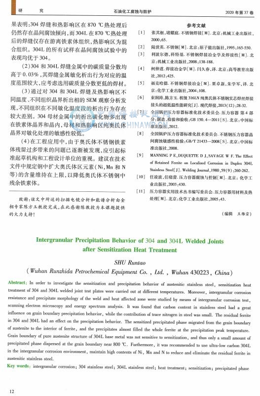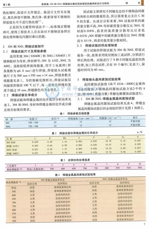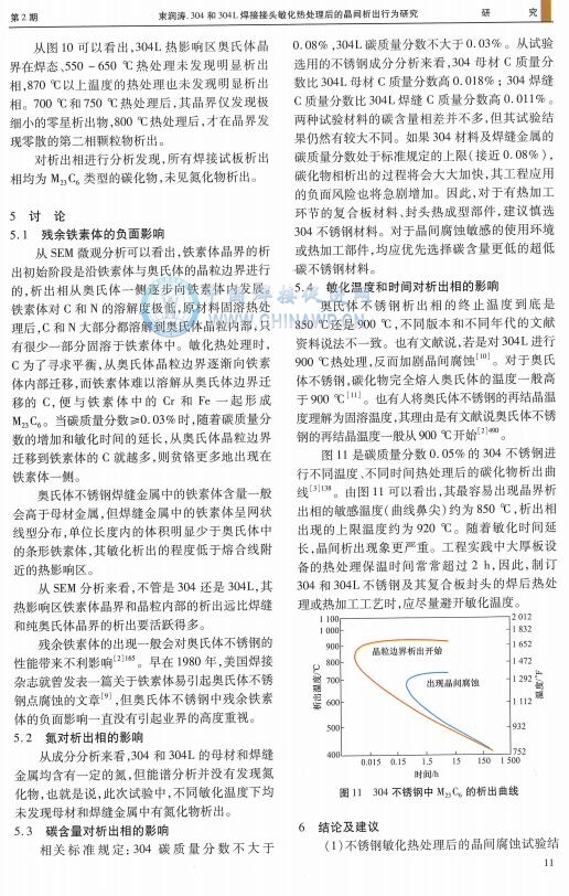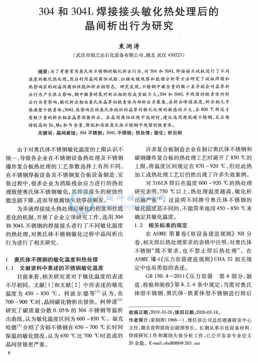 304和304L焊接接头敏化热处理后的晶间析出行为研究
