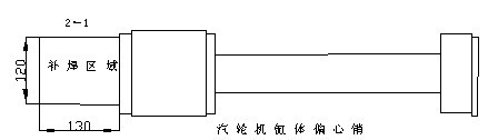 黄岛电厂三期扩建工程#5汽轮机缸体上的一个偏心销在加工的过程中,由于加工人员对尺寸的理解错误,导致偏心销尺寸直径多加工了5mm,无法满足使用要求,故要求对偏心销进行堆焊后再进行车削加工,以符合要求尺寸。